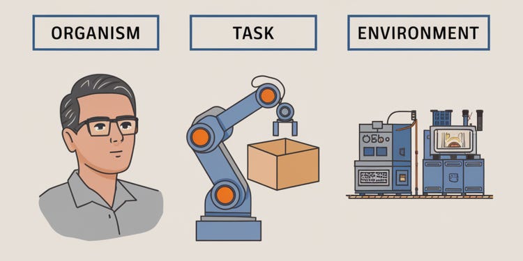 Think about it like this: When you walk into a room, you don't have to consciously think about all the possible ways you could interact with it. You naturally perceive what's available to you based on your needs, abilities, and the environment itself. These available actions (what fancy people call "affordances") emerge from the interaction between who you are, where you are, and what you're trying to do. The same principle can apply to our characters. Instead of imposing actions on them like puppet masters, we can set up constraints—their personal limitations, their environment, and their objectives—and then watch as natural story opportunities emerge from these interactions.